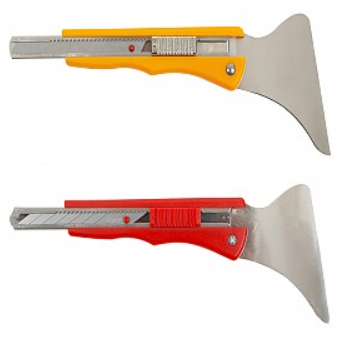 필름작업 전용칼로 한쪽은 커터칼 한쪽은 금속 헤라가 있다.