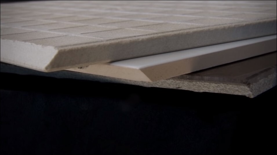 45도 각도로 끝까지 치게되면 타일 얇은 부분이 깨지기 때문에 2~3mm정도 남겨놓고 컷팅한다. 아무리 컷팅을 잘한다 해도 맞닿는 부분의 유격은 어느정도 있을 수 있다.